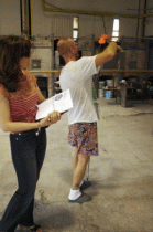 Maestro Michele interpreta le spirali del disegno con strisce di vetro. |