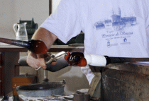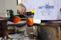 I diversi strati di vetro colorato vengono poi sagomati a caldo, ruotando il bastone metallico di supporto. |