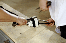 La canna viene tagliata per l'ultima fase della lavorazione. |
